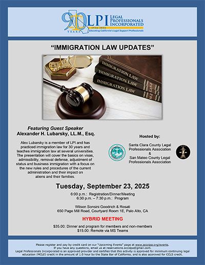 This is a co-sponsored event with Santa Clara County Legal Professionals Association.